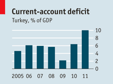 Ce dynamisme est donc impressionnant. Mais ce serait se tromper que de penser qu’il va toujours durer. Même si les investisseurs des pays développés se ruent sur les fonds des pays émergents, un rapide coup d’œil aux statistiques vitales de ces pays suggère qu’ils sont nombreux à connaître des problèmes. L’Inde a un large déficit budgétaire. Plusieurs pays, du Venezuela au Vietnam, ont une inflation à deux chiffres. L’Afrique du Sud a une balance des paiements largement déficitaire. Mais si on se base sur les indicateurs de risques, de la croissance rapide de l’endettement et de l’inflation élevée à un important déficit extérieur, un pays dépasse du lot : la Turquie.
